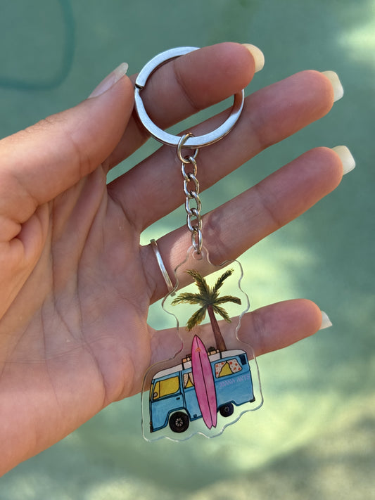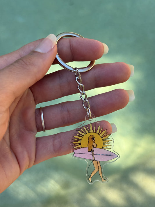 surf girl acrylic keyring
