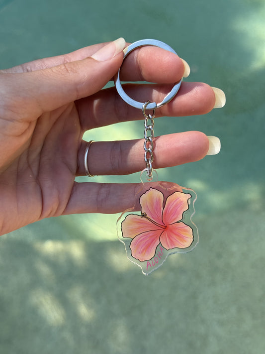 Aloha hibiscus acrylic keyring